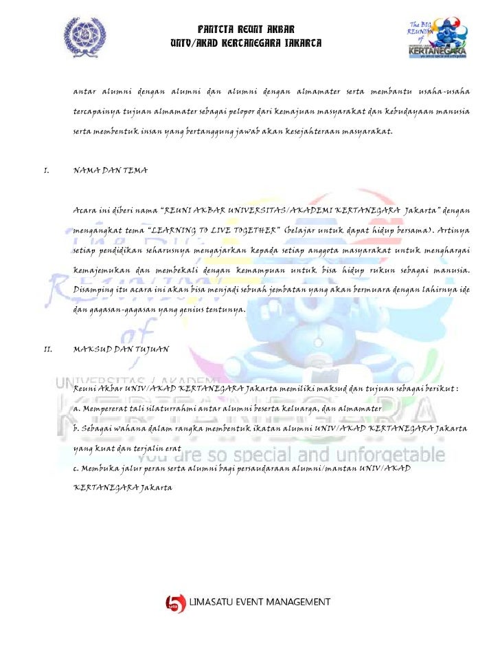 Proposal Reuni from imgv2-2-f.scribdassets.com Acara reuni dipelopori oleh ninda, murid tercerdas di kelas. Kegiatan sekolah, usaha, pengajuan dana, kewirausahaan, pembangunan proposal kegiatan pramuka. Data pendukung lainnya, biasanya berupa; Anak sekolah seperti pelajar, mahasiswa, bahkan orang tua yang berprofesi di dunia bisnis atau di perusahaan pasti. Proposal reuni smp n painan angkatan 1990 from image.slidesharecdn.com. Proposal adalah pengajuan dana untuk sebuah kegiatan yang diadakan disekolah, tempat ibadah, ataupun kegiatan umum di masyarakat. Reuni bukan hanya dilakukan oleh mereka yang merupakan alumni universitas atau sekolah, namun juga biasanya dilakukan oleh para anggota keluarga. Demikian proposal ini kami buat sebagai sebuah acuan contoh penutup proposal reuni.